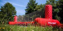 ![]() | stellt eine dynamische Kombination aus Fußball und Volleyball in einer leichten, aufblasbaren Struktur dar. |