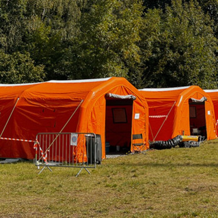Die luftgefüllten Einsatz- und Rettungszelte wurden speziell für den Einsatz durch Feuerwehren, Rettungsdienste, das Militär und Hilfsorganisationen konzipiert. Sie erlauben eine rasche und anpassungsfähige Einsatzbereitschaft und gewährleisten besten Schutz in herausfordernden Umständen. Sei es als Notfallzelt, mobile Kommandozentrale, temporäre Unterkunft oder Präsentationszelt auf Messen und Outdoor-Events – die pneumatischen Zelte sind ideal für verschiedene Anwendungen.
