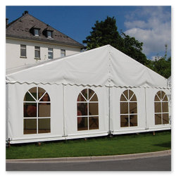 Aufgrund eines besonderen Profils der Traufpfette wird kein zusätzliches Planenrohr benötigt, was zu einem sehr geringen Spaltmaß führt. Auf Markisenröllchen laufen die Planen der Party- und Festzelte leichtgängig und fast geräuschlos.