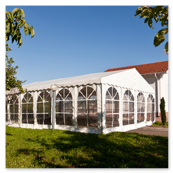 Extraplus zur Gewährleistung Ihrer Sicherheit: Alle Festzelte werden gemäß den neuesten Standards statisch berechnet und vom TÜV überprüft. Einige Systeme sind auch an der Küste zu platzieren.