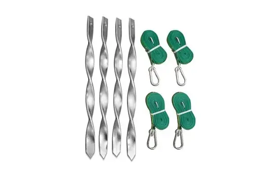 Im Standardset sind Verankerungen und Abspannleinen enthalten, die dafür sorgen, dass das Zelt gesichert ist und während des Einsatzes im Feld stabil bleibt.