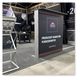 Der Messestand kann aufgrund seiner faltbaren Bauweise schnell und ohne Mühe transportiert und aufgebaut werden. Die austauschbare Abdeckung erlaubt einen einfachen Grafikwechsel zwischen den Events, während das zusätzliche Innenregal praktischen Stauraum für Werbematerialien und kleinere Accessoires bietet.