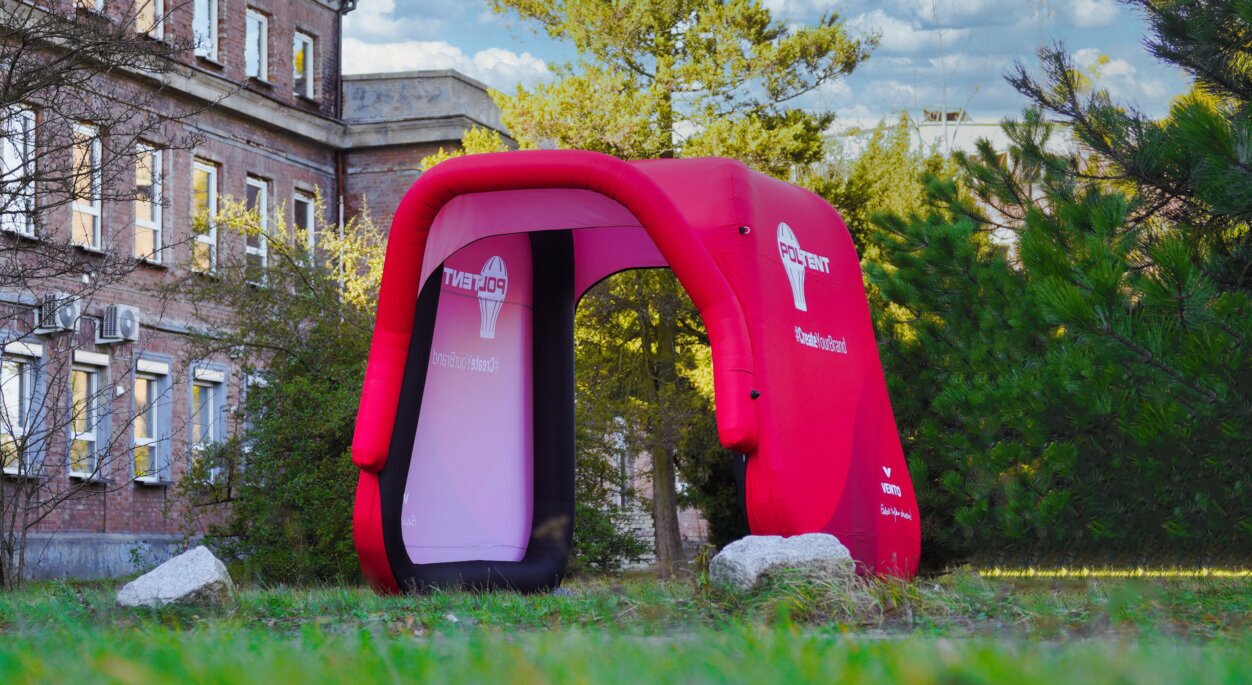 Sehen Sie, wie das Pneumatische Zelt in Aktion aussieht