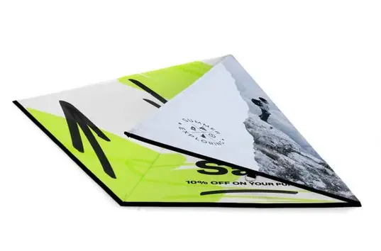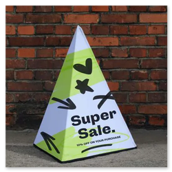 Wir ermöglichen Ihnen einen kreativen Markenauftritt, indem Sie die gesamte Pyramide bedrucken lassen. Außerdem fungiert jede Seite der Pyramide als eigene Werbefläche, was es Ihnen ermöglicht, zwei verschiedene Grafiken auf einem Produkt zu gestalten.