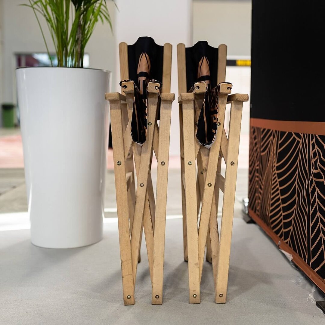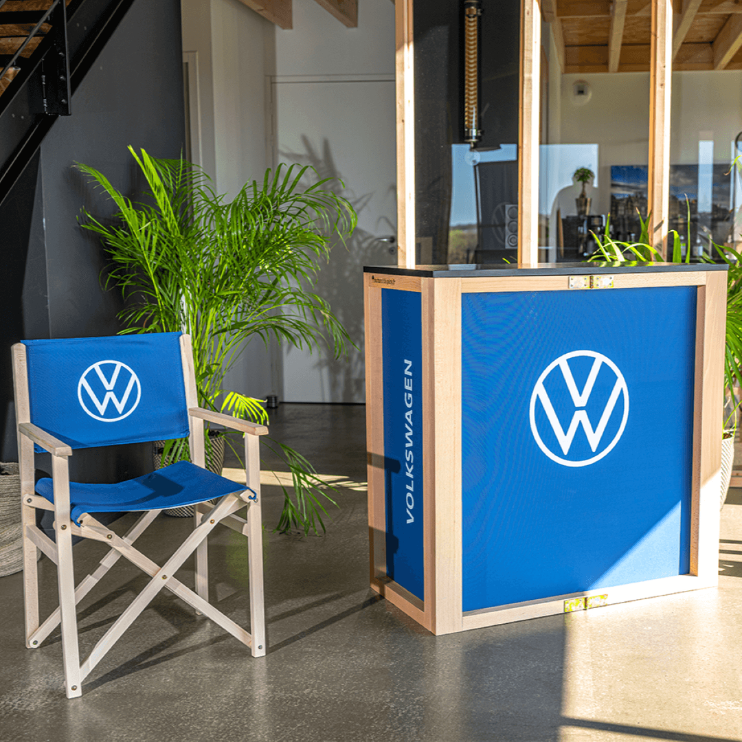 Sowohl für die tägliche Markenpräsentation, die Arbeit als Regisseur als auch für den intensiven Einsatz bei Veranstaltungen sind Regiestühle geeignet. Die Stühle sind aufgrund ihrer robusten Holzkonstruktion und der hochwertigen Materialien für Sitzfläche und Rückenlehne nicht nur leicht zu transportieren, sondern auch langlebig und können bis zu 95 kg tragen. Dank des individuellen Drucks entstehen strahlende Farben, die auch bei häufigem Außeneinsatz nicht verblassen und farbbeständig sind. Eine nützliche und funktionale Antwort für Kundengespräche, Vorträge oder das Etablieren von Markenbekanntheit.