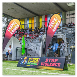 Sie sind robust gegenüber mechanischen Beschädigungen, und die sorgfältig aufgebrachten Grafiken werden bei der Veranstaltung glänzen und Aufsehen erregen. Sie trotzen Wind und Regen – selbst einem heftigen Balltreffer können sie standhalten.