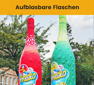 Mit unseren maßgeschneiderten aufblasbaren Produktnachbildungen bringst du deine Marke auf ein ganz neues Level! Egal ob Flaschen, Dosen oder andere kreative Formen – wir machen es möglich! Unsere aufblasbaren Werbelösungen sind nicht nur ein echter Hingucker, sondern auch super praktisch für Events, Messen oder Promotions. Lass deiner Fantasie freien Lauf und präsentiere deine Produkte auf eine einzigartige Art und Weise.
