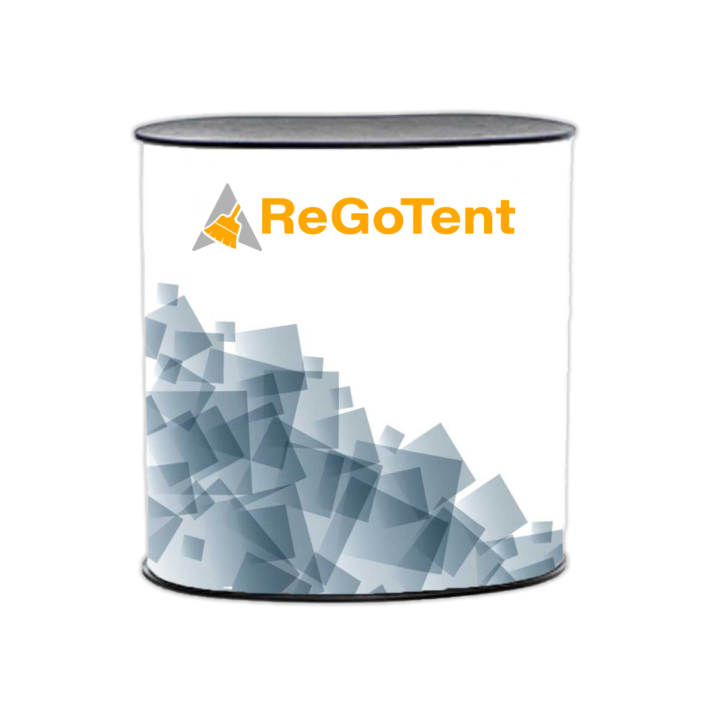 Die Oval-Promotiontheke ergänzt die Messewände Zipper perfekt. Die Grafiken lassen sich unkompliziert an der Konstruktion fixieren. So kann das System mit minimalen Ressourcen immer wieder an neue Gelegenheiten angepasst werden. Die Promotionstheke kann in weniger als einer Minute aufgebaut werden. Die Promotiontheke setzt sich aus lediglich drei Komponenten zusammen und weist eine enorme Stabilität auf.