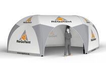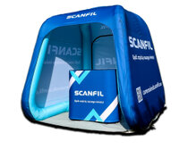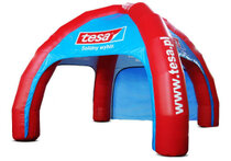 ![]() | Diese pneumatischen Zelte sind robust, wasserabweisend und können auf Wunsch individuell bedruckt werden |
