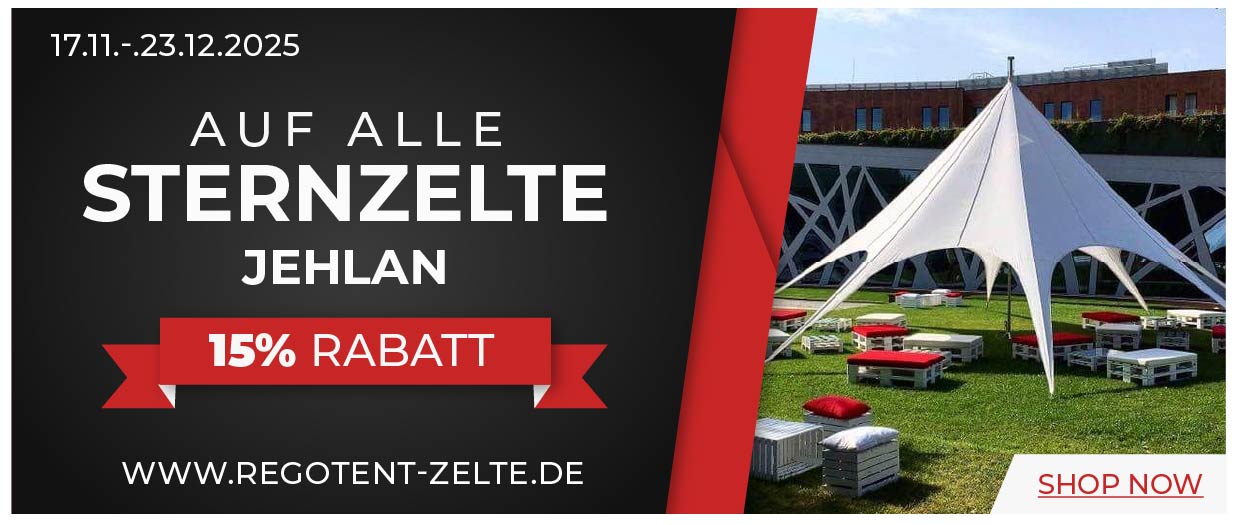 15% Rabatt auf alle bedruckten und unbedruckten Sternzelte Jehlan
