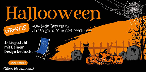 Schnapp dir dein Halloween-Special! Bei jeder Bestellung bekommst du jetzt einen Liegestuhl gratis dazu. Perfekt, um die gruselige Saison stilvoll zu genießen. Lies weiter, um mehr über die Aktion zu erfahren und dir dein Geschenk zu sichern!