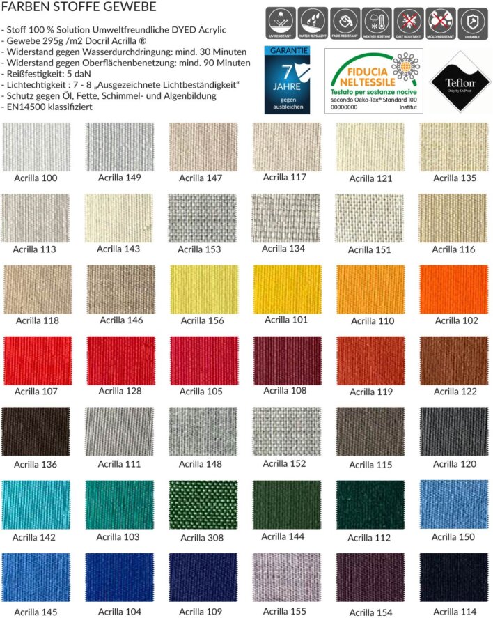 Die Gastroschirme bestehen aus hochwertigem Polyacryl-Stoff mit 295 g/m²: