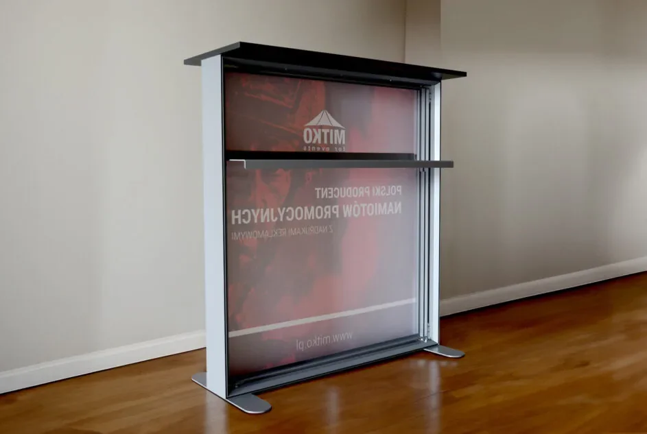 - MARKENWERBUNG – Möglichkeit zum Bedrucken mit Ihrem Logo oder individuellen Grafiken, wodurch die Theke zu einem effektiven Werbemittel wird.