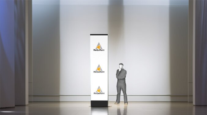 240g Polyestergewebe mit 4-Farben im Sublimationsdruck bedruckt und ist austauschbar. Der bedruckte Überzug wird anschließend auf einem stabilen, wetterfesten Sockel befestigt.