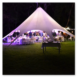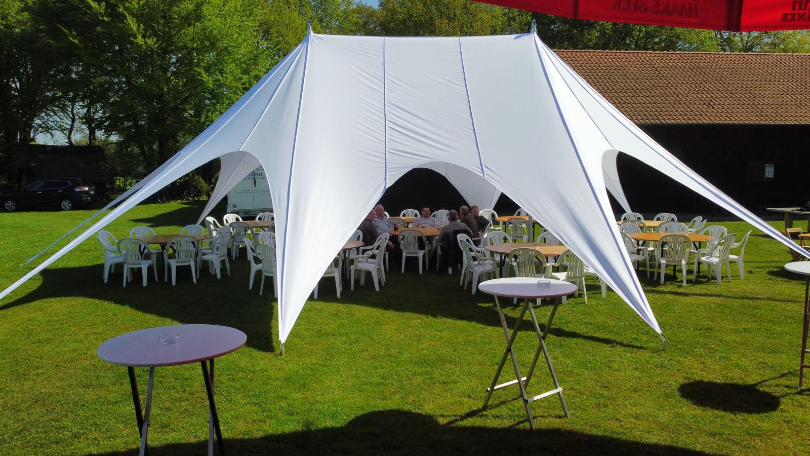 Das Sternzelt ist ein Must-Have für alle Arten von Veranstaltungen. Mit seiner modernen Form und der großzügigen überdachten Fläche ist es nicht nur ein Blickfang, sondern auch ein äußerst funktionaler Schattenspender.