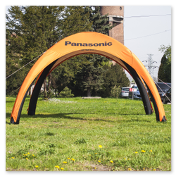 Die stabilen und wetterfesten pneumatischen Dome-Zelte können individuell bedruckt werden. Weil sie luftdicht sind und eine innovative Konstruktion besitzen, benötigen Sie kein Dauergebläse. Das macht sie äußerst effektiv und unabhängig von Stromquellen – ideal für mobile Einsätze.