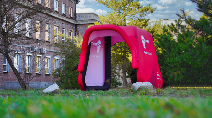 Sehen Sie, wie das Pneumatische Zelt in Aktion aussieht